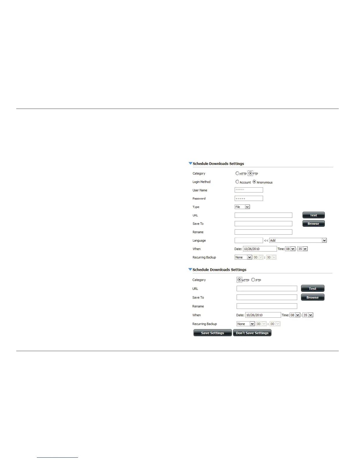 URL: Enter the FTP/ HTTP site address for the scheduled