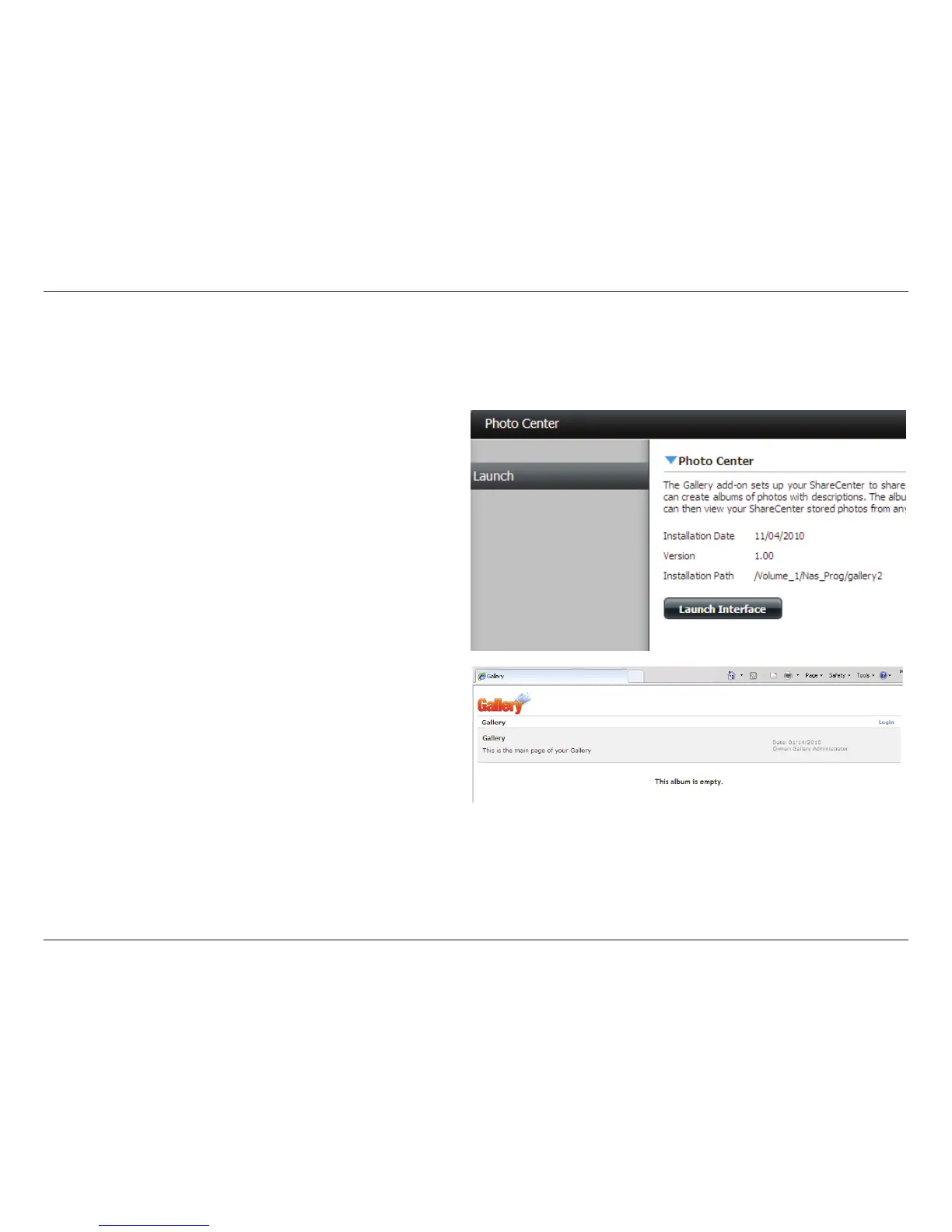 The Photo Center add-on sets up your ShareCenter™ to share your photos over the web using Gallery 2 software. It provides a convenient interface
