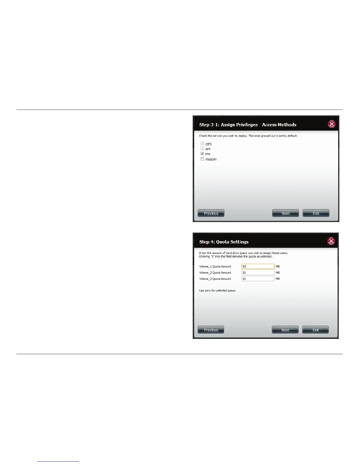 on each volume. Type 0 to provide unlimited disk space to the user.