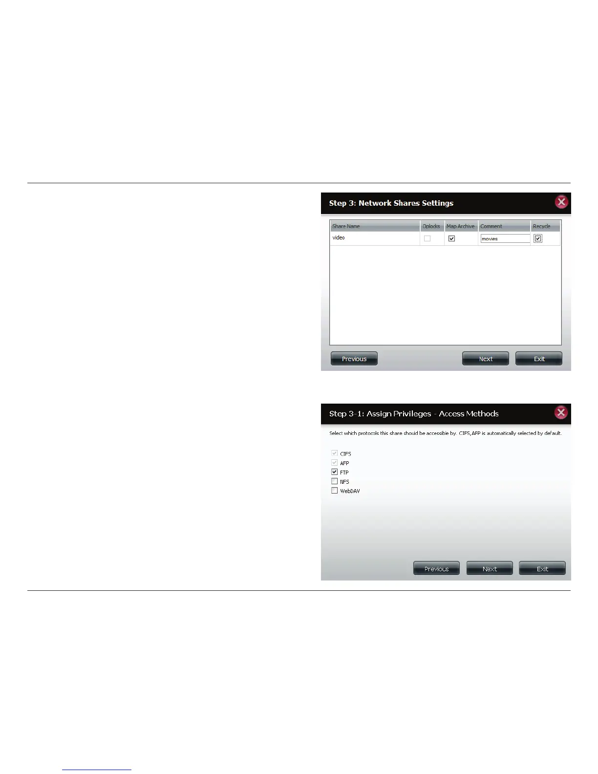 This step allows you to assign privileges to this share.