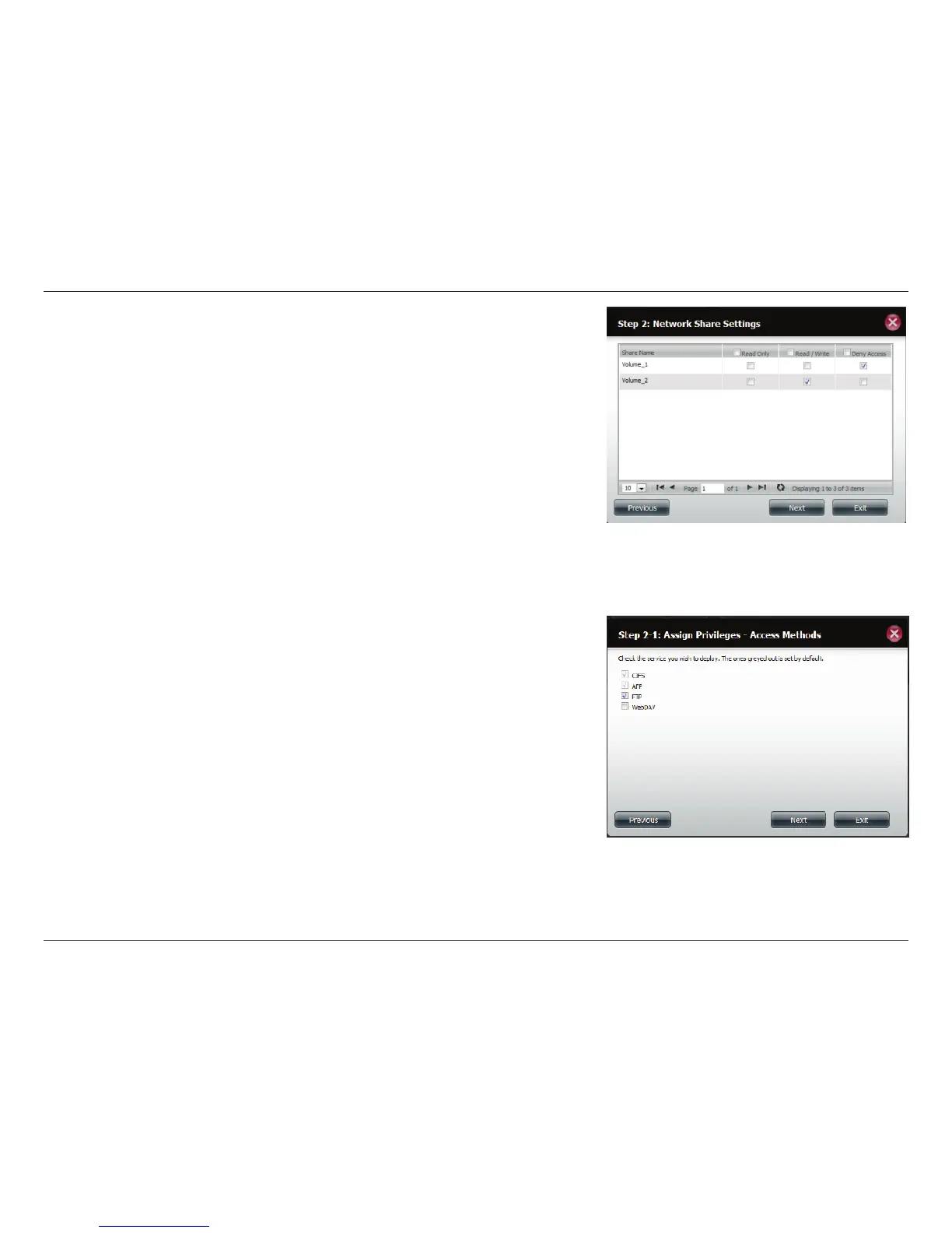 Select the appropriate Network Share Settings (read, read/write, deny ac-