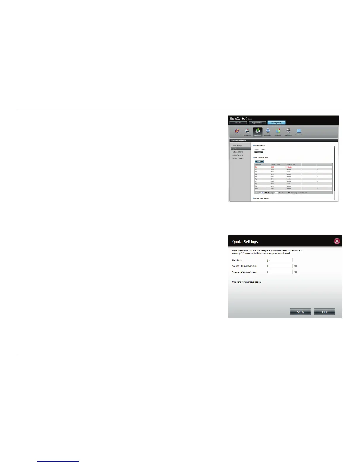 The Quota Settings conguration box will display the user account you