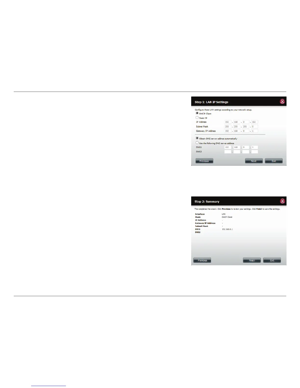 This step allows you to congure your LAN settings. Choose DHCP Client to
