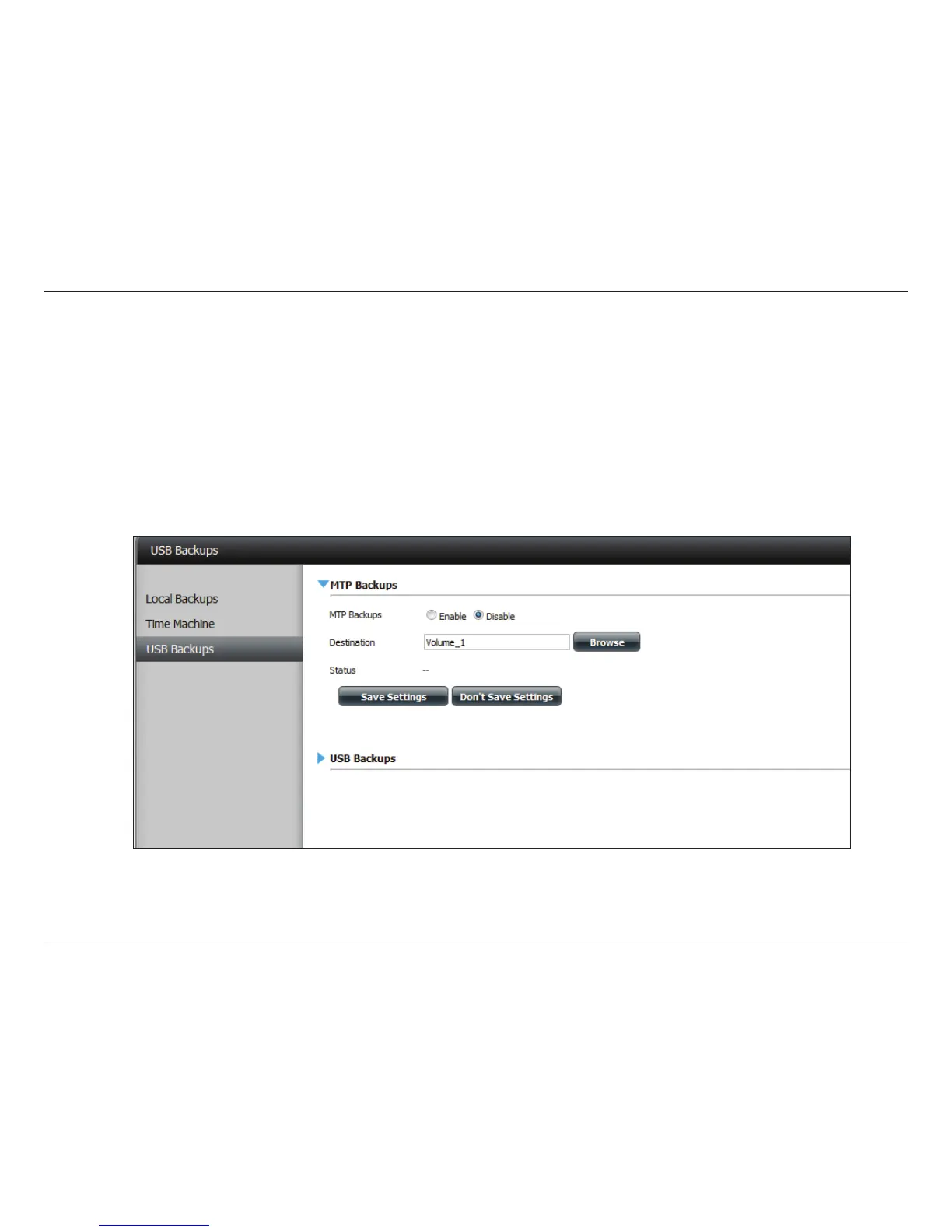 This section allows the user to congure the ShareCenter so that it becomes a backup destination for a USB device that is