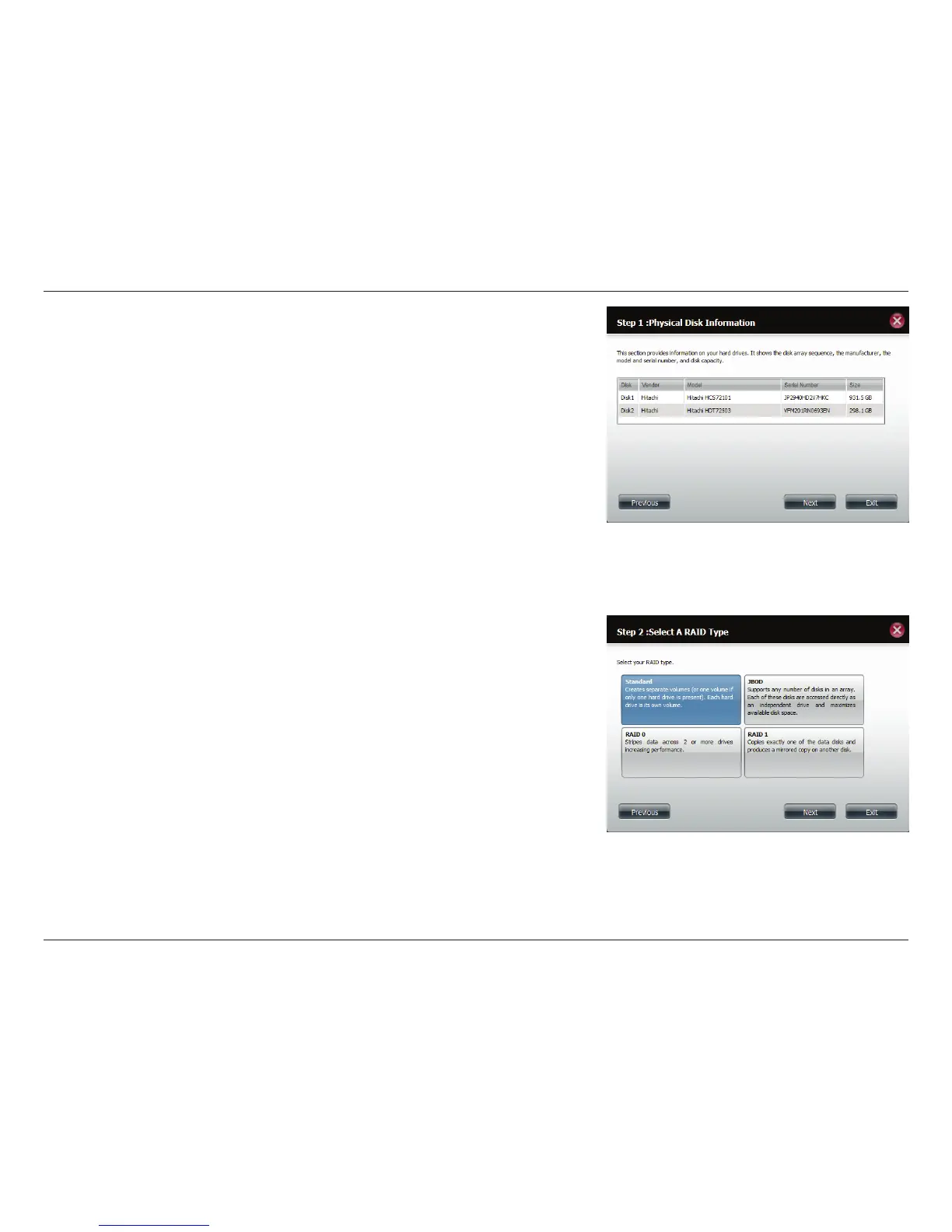 hard drives connected to the DNS-327L. It shows the array number, vendor,