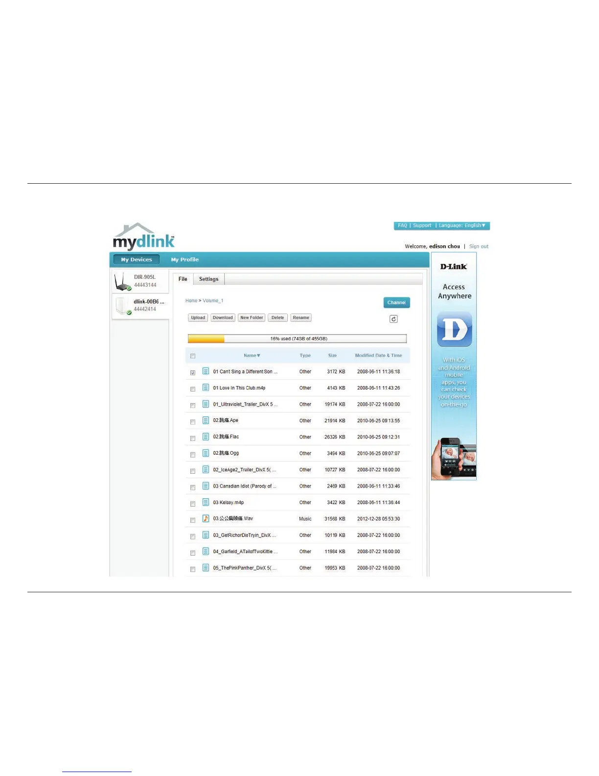 Click Volume 1 to see its contents. Here you can create a New Folder, Upload and Download les, Delete and Rename les.