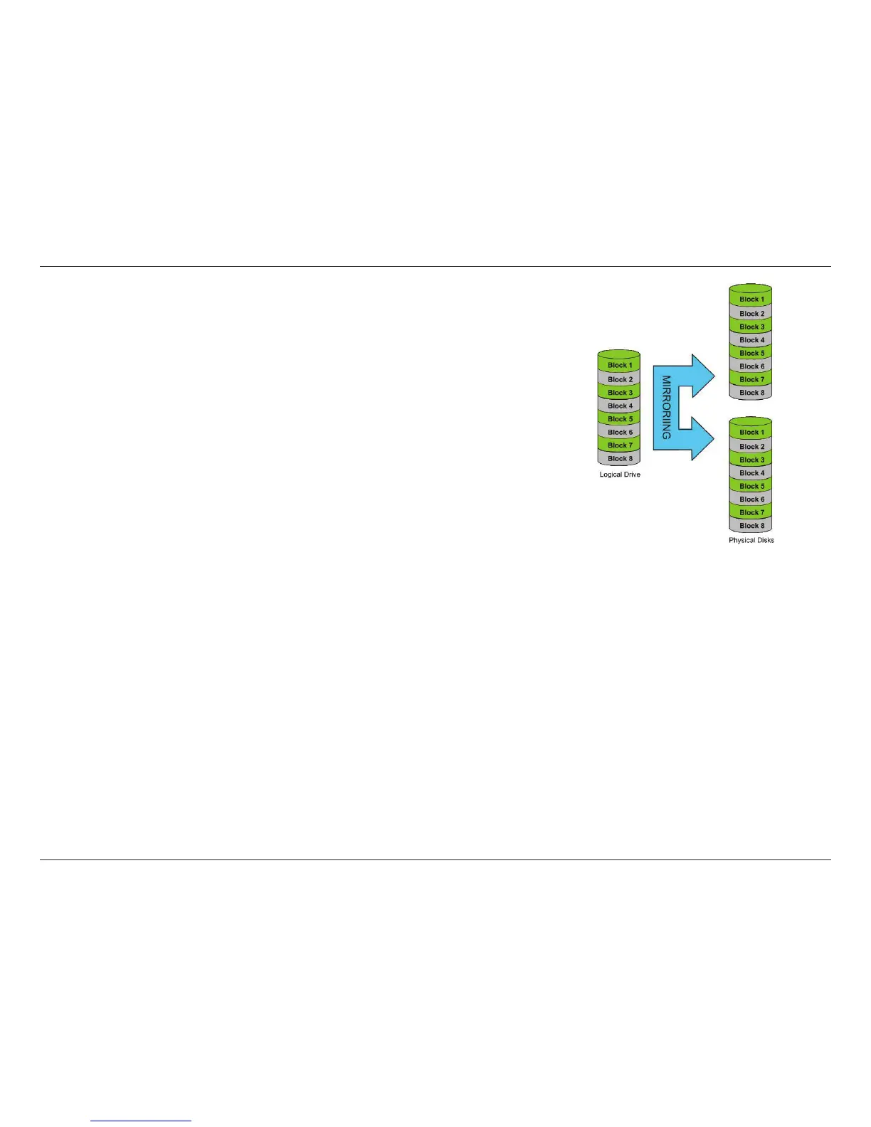 Mirrors the hard drives for redundancy. Because the data is stored on