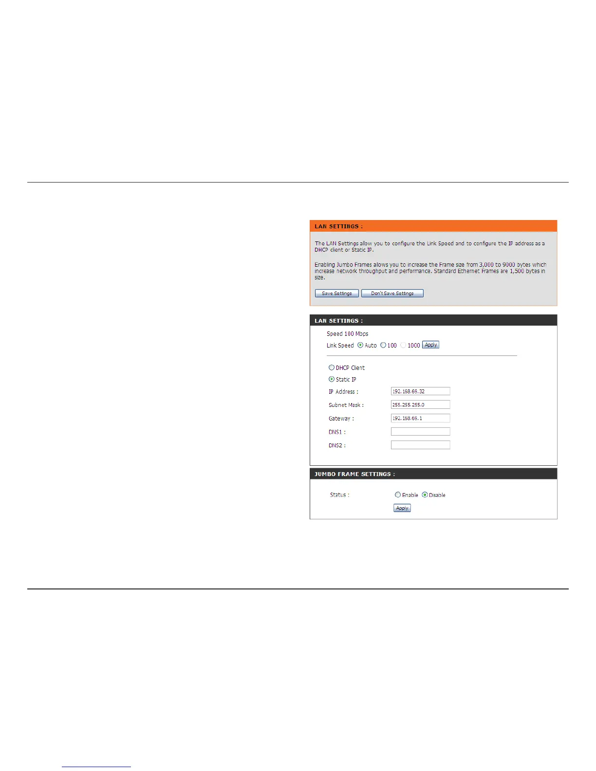 The Local Area Network settings for the DNS-343 are configured on the LAN Setup