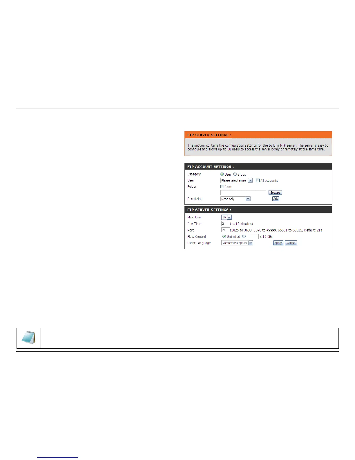 The DNS-343 is equipped with a built in FTP Server. The server is easy to configure