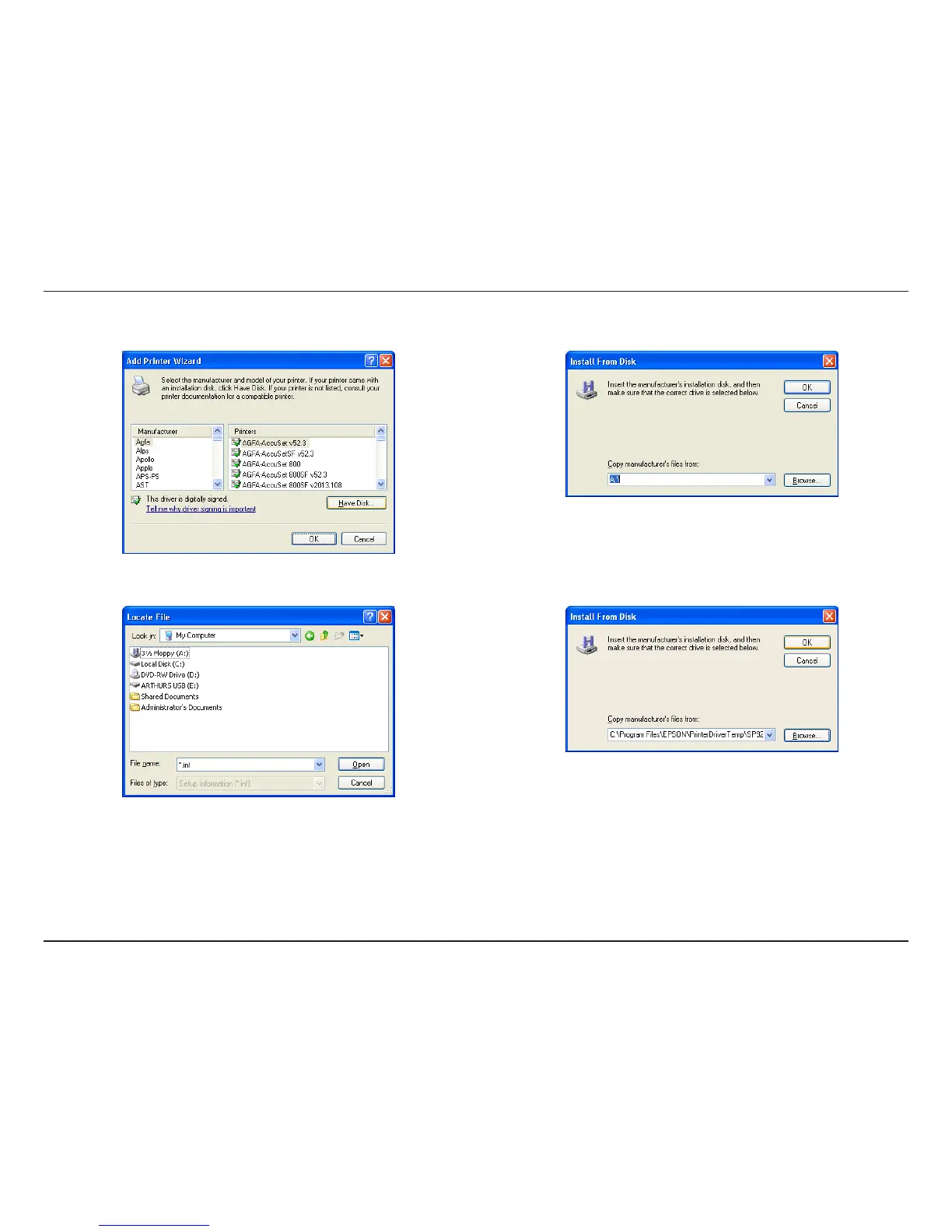 10. Insert the print driver CD or browse to the appropriate directory.9. Select the appropriate printer driver from the list and click OK to complete the