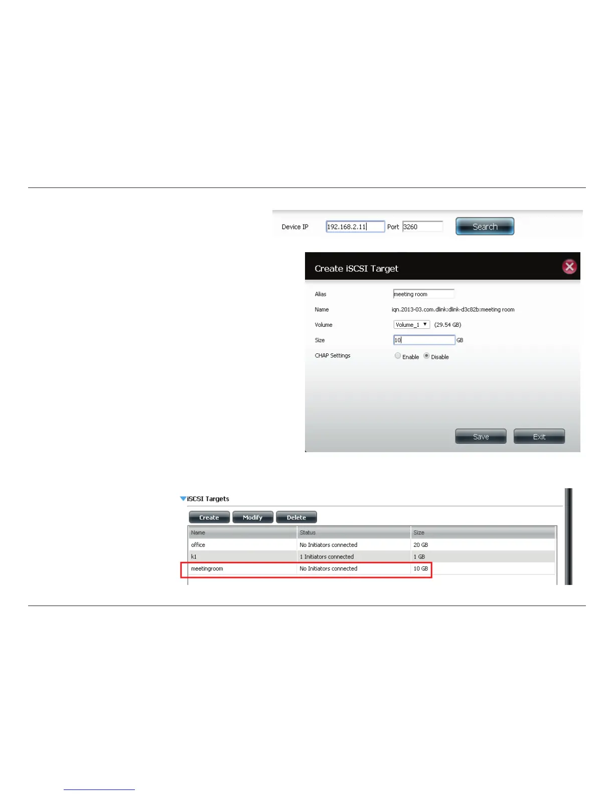 Here you can see the iSCSI Target in the iSCSI table. You can