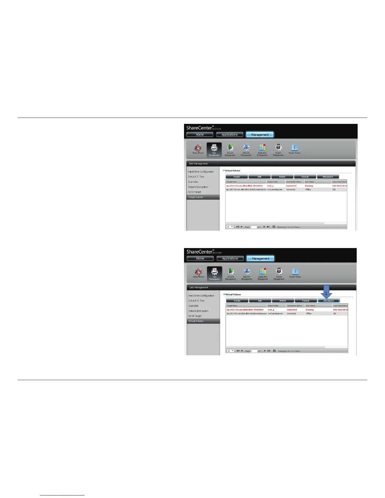 To disconnect from the Virtual Volume, go to Disk