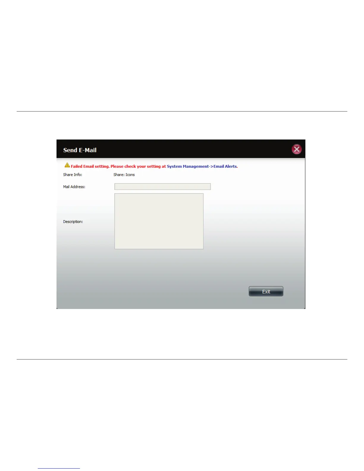 If you receive an error message, it means you haven’t setup your email settings. Click the link provided to congure your email settings if you haven’t