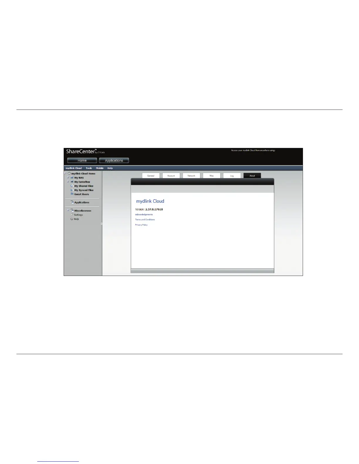 The About page displays the version number, acknowledgements, terms and conditions, and privacy policy.