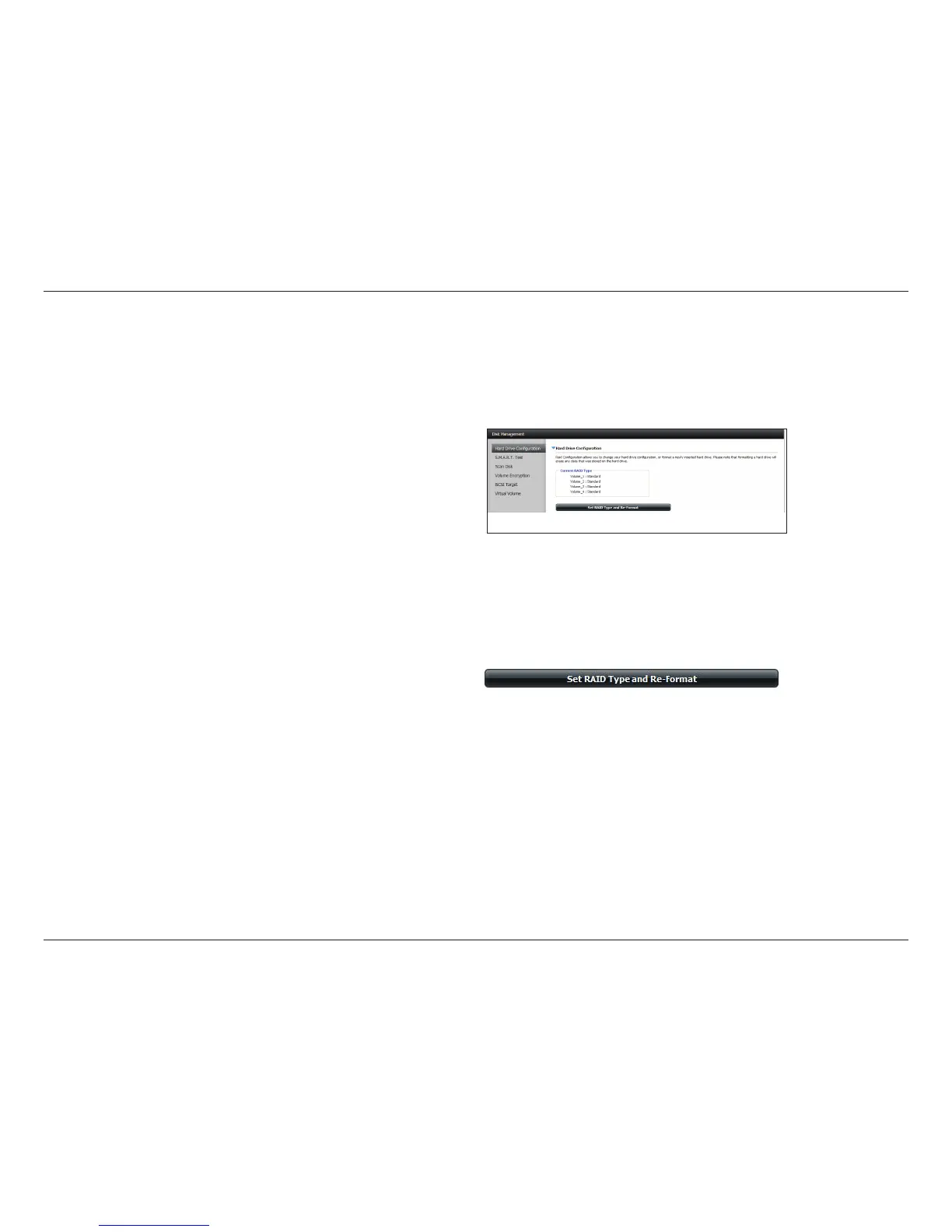 When you click on the Set RAID type and Re-Format button in the Disk Management-Hard Drive Conguration menu a wizard will start, allowing