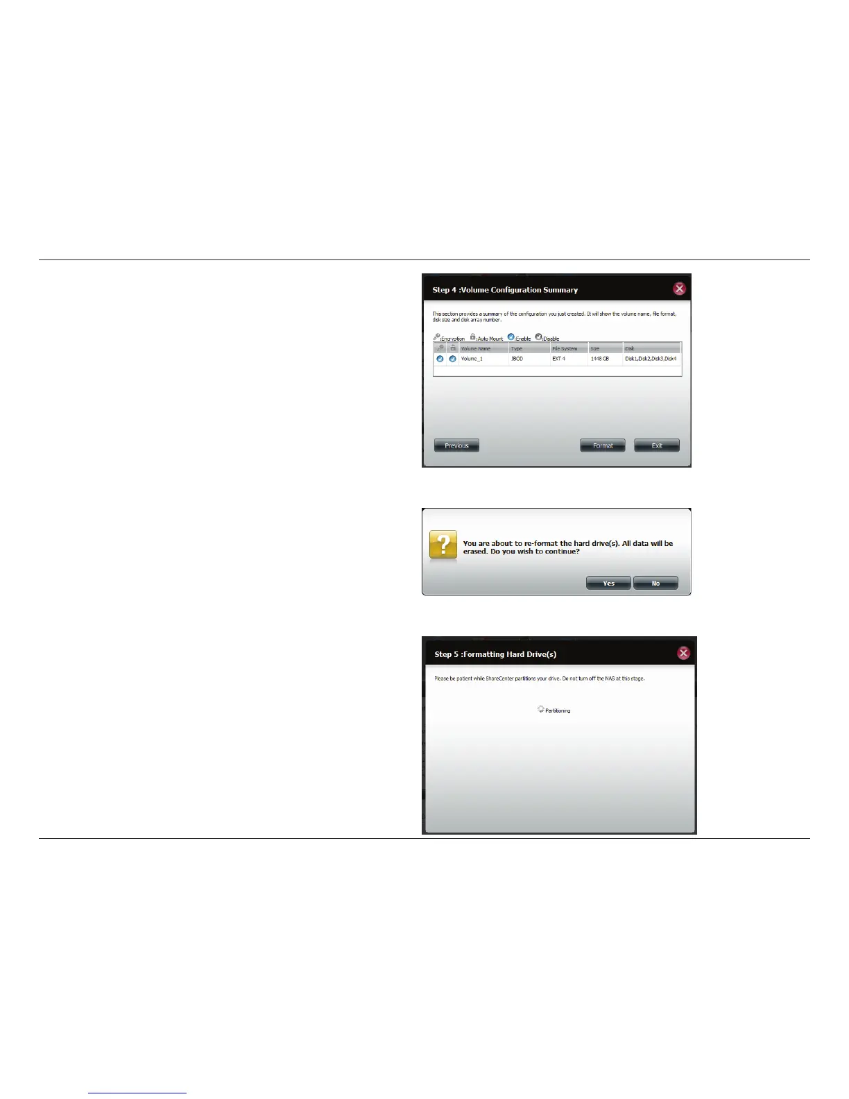 ShareCenter will now prepare the volume for partitioning.