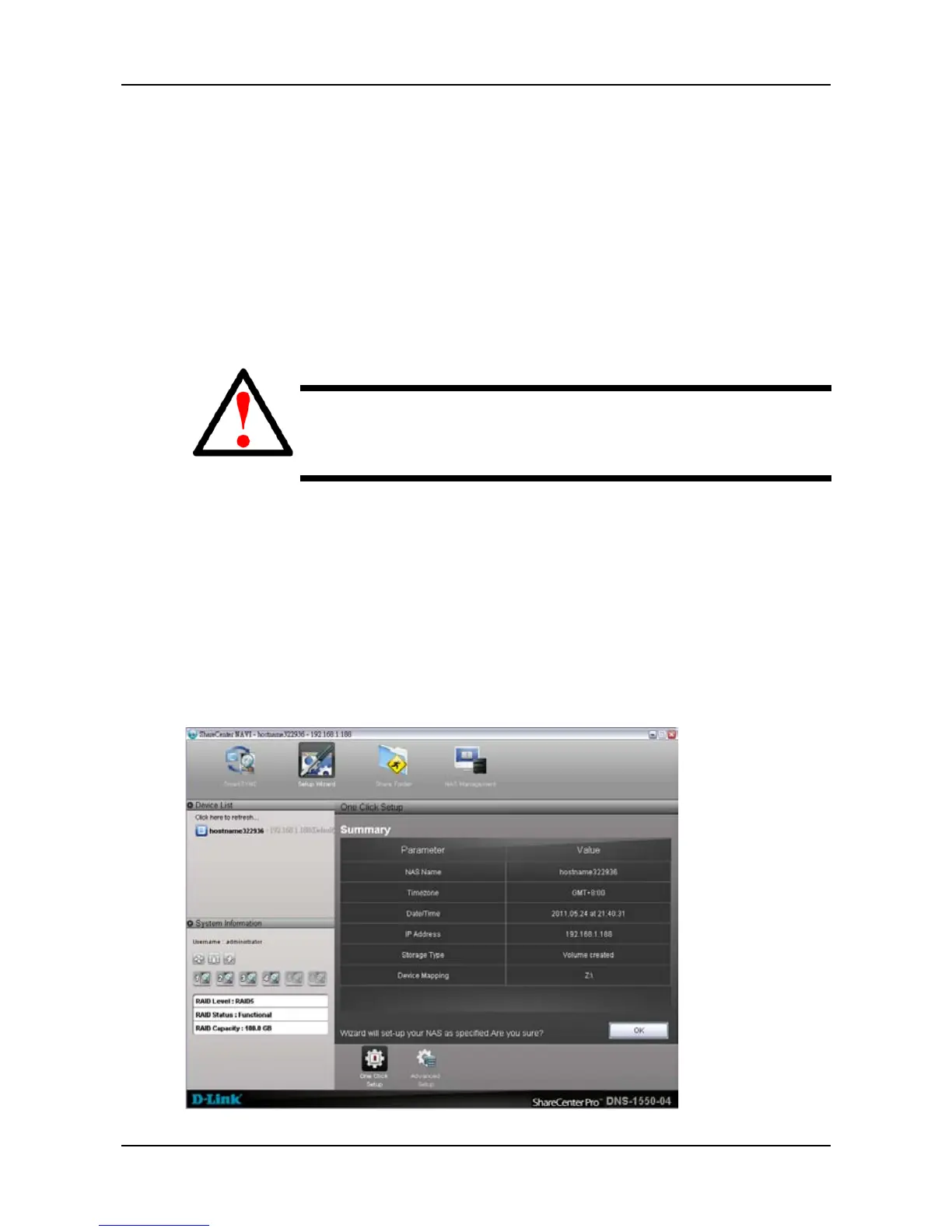 Do NOT run the Setup Wizard on a NAS system that is
