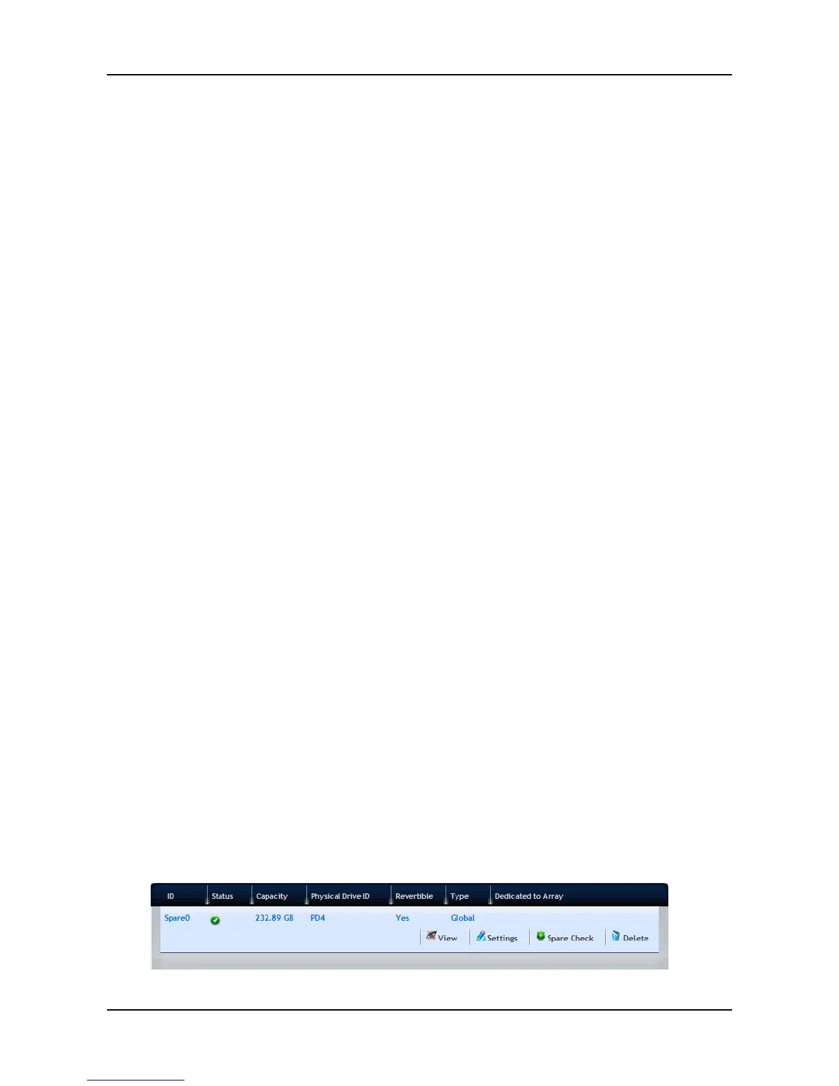 1. Click Storage tab > Spare Drive. The list of spare drives appears.