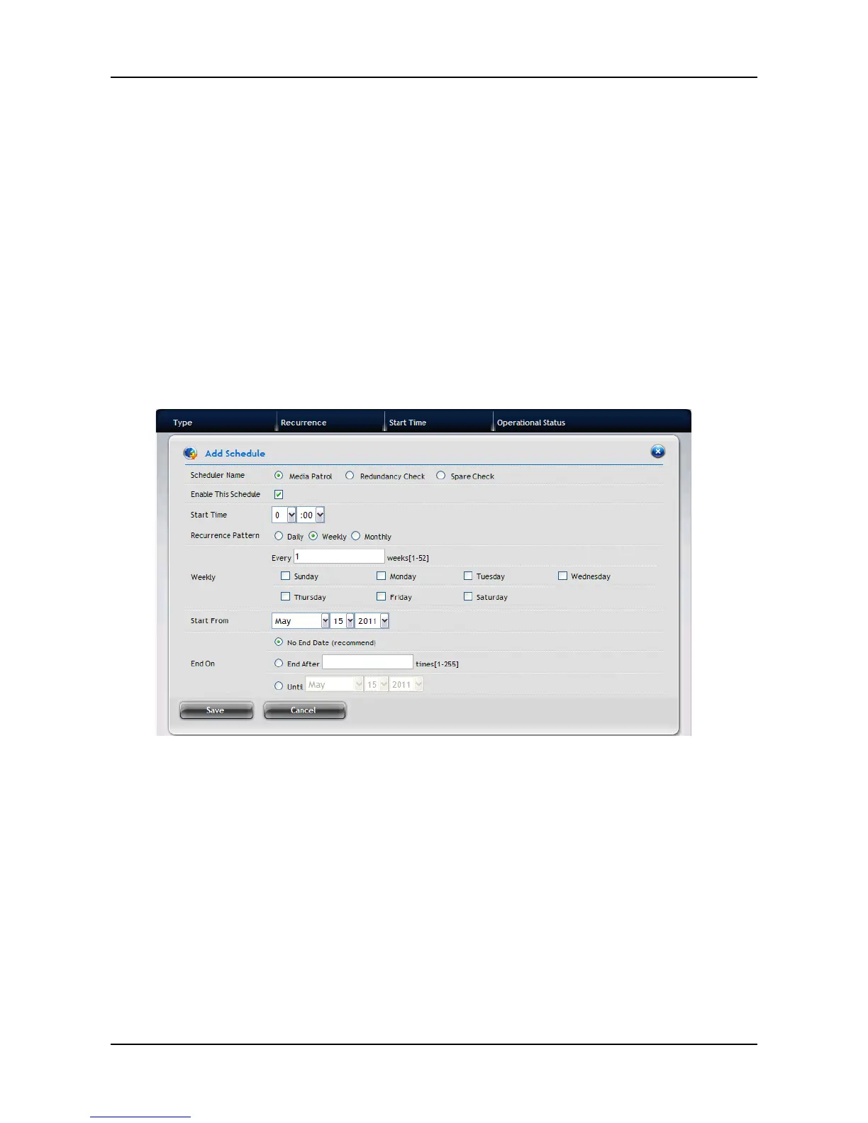 − Scheduler Name – Select Media Patrol, Battery Recondition,
