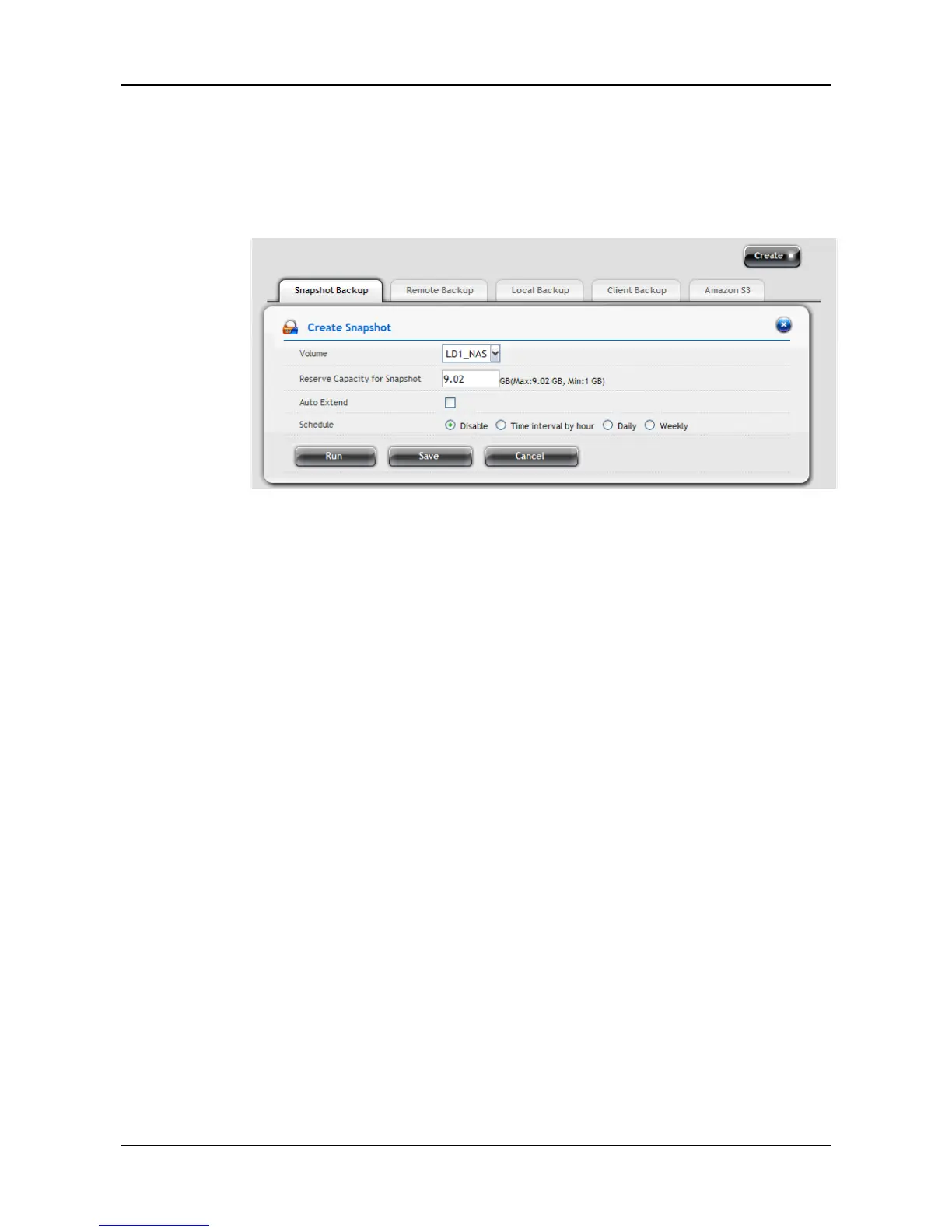 1. Click NAS tab > Backup > Snapshot Backup tab.