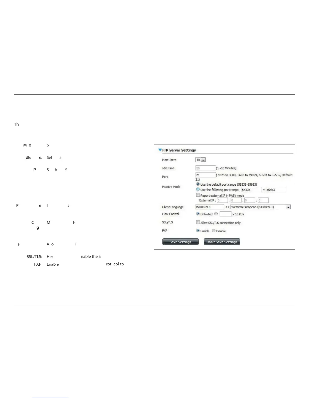 local network or at a remote location. The FTP server can be congured to allow user access to specic directories, and will allow up to 10 users to