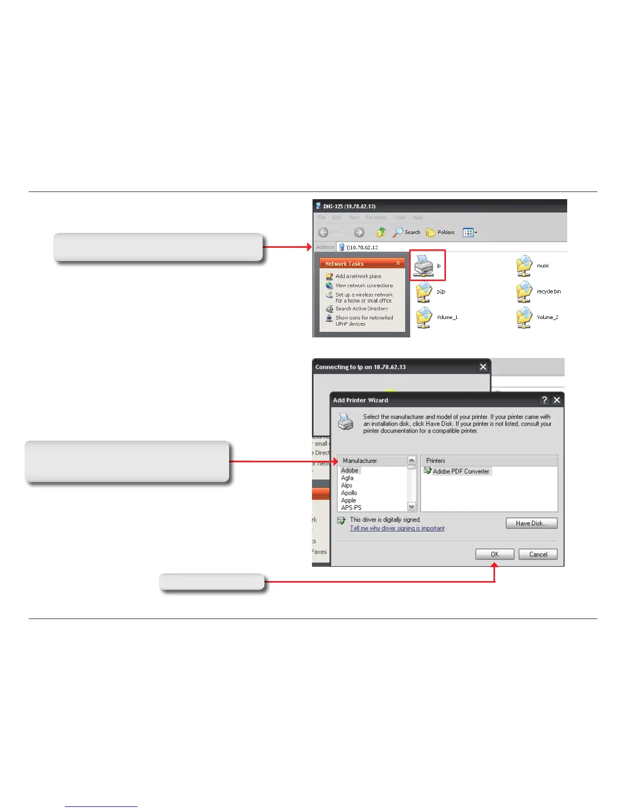 to browse for the printer driver le.