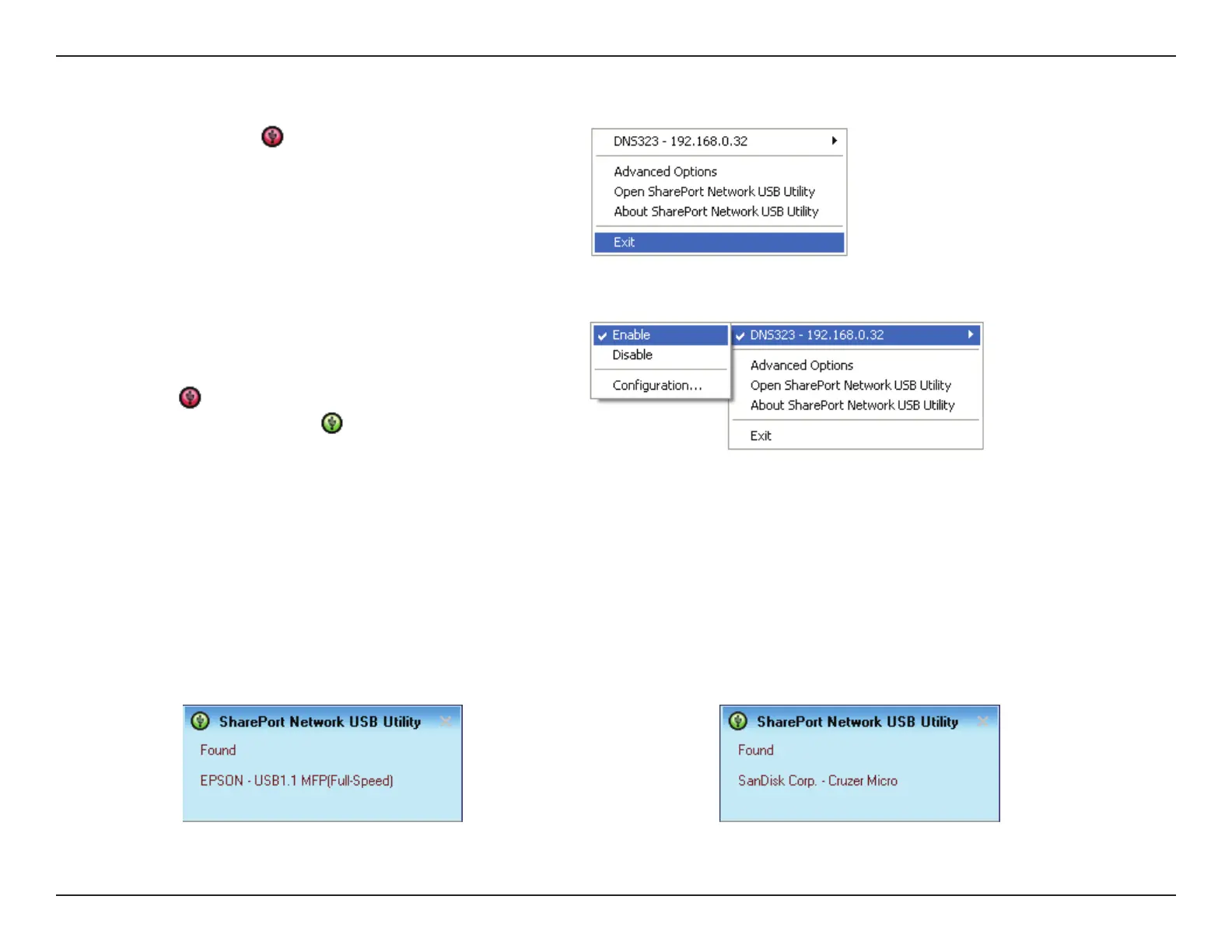 The D-Link SharePort Utility automatically detects connected USB devices� A window will pop up every time a