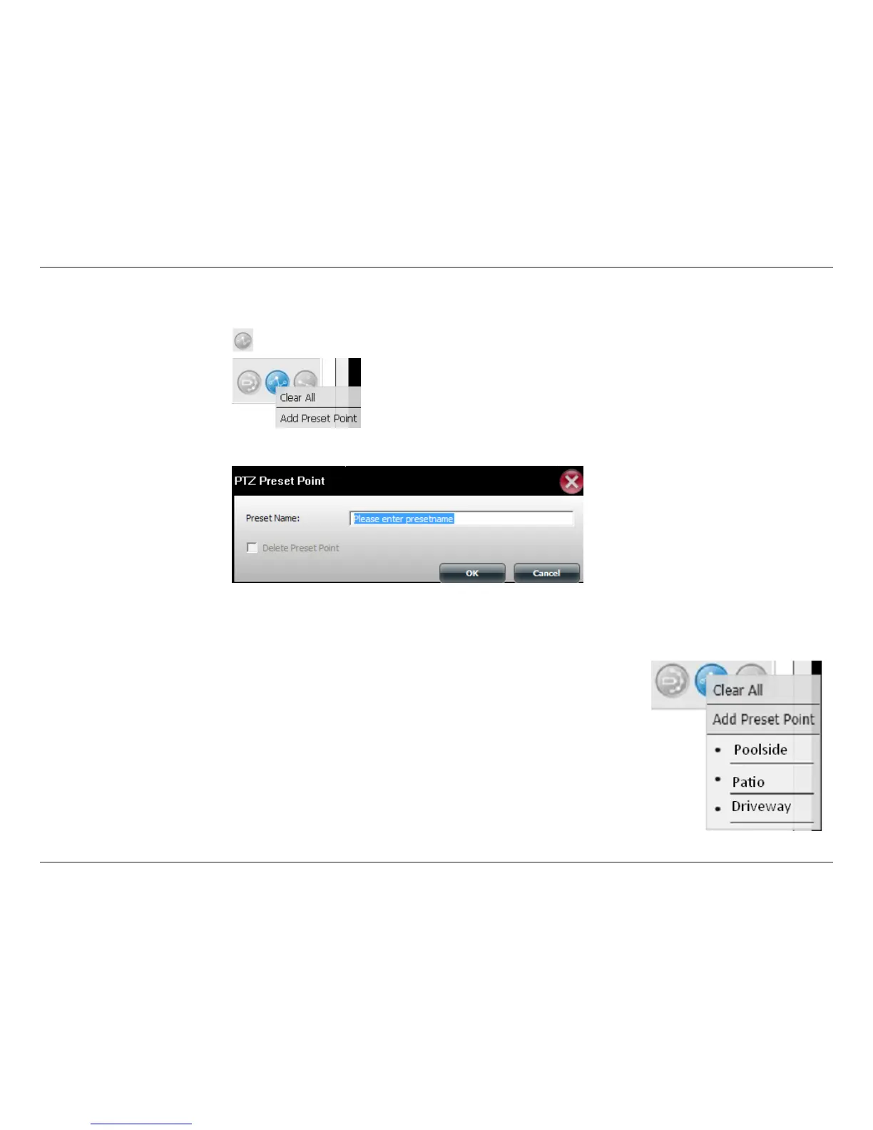 create a new Preset Point. This brings up the PTZ Preset Point box. Enter a Preset Name and