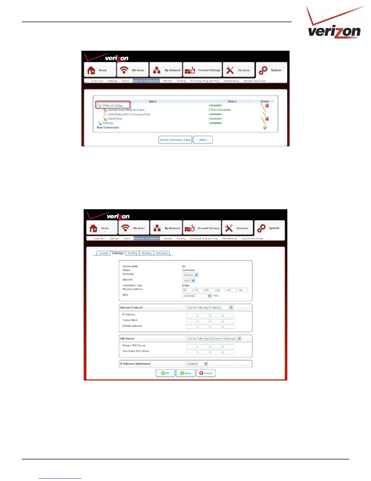 7. Click System > Network Connections > WAN-LAN Bridge.