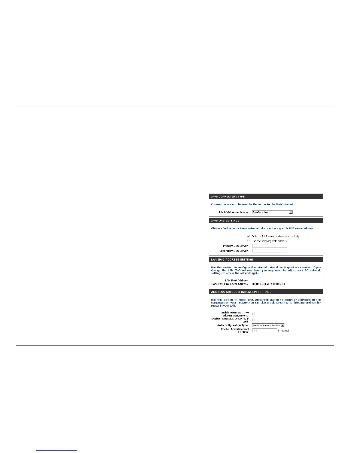 There are several connection types to choose from: Auto Detection, Static IPv6, Autoconguration (SLAAC/DHCPv6), PPPoE,