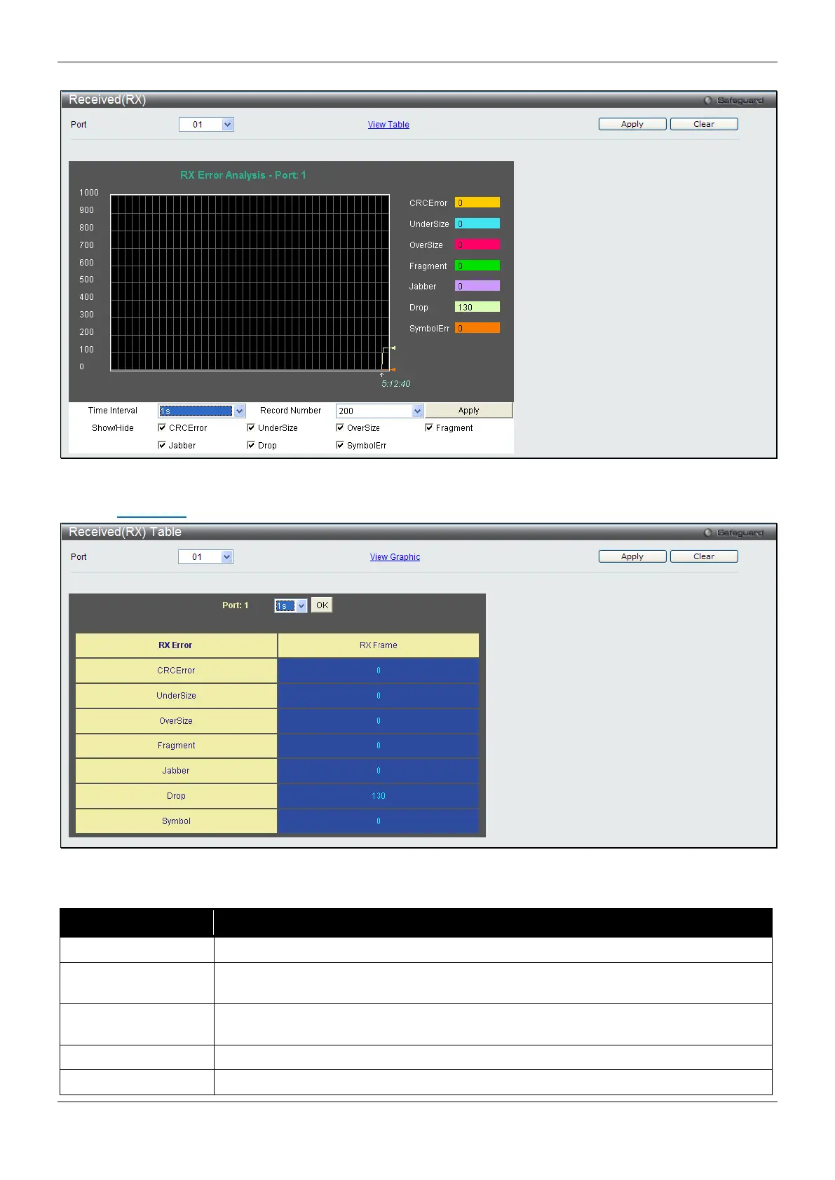 Figure 11-11 RX Error Analysis window (table)