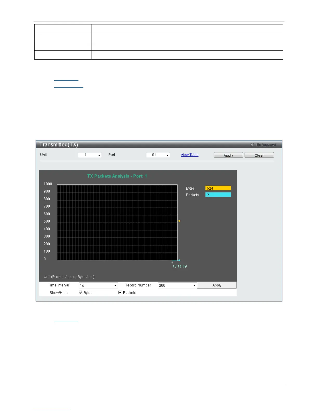 To view this window, click Monitoring > Statistics > Port Statistics > Packets > Transmitted (TX) as shown