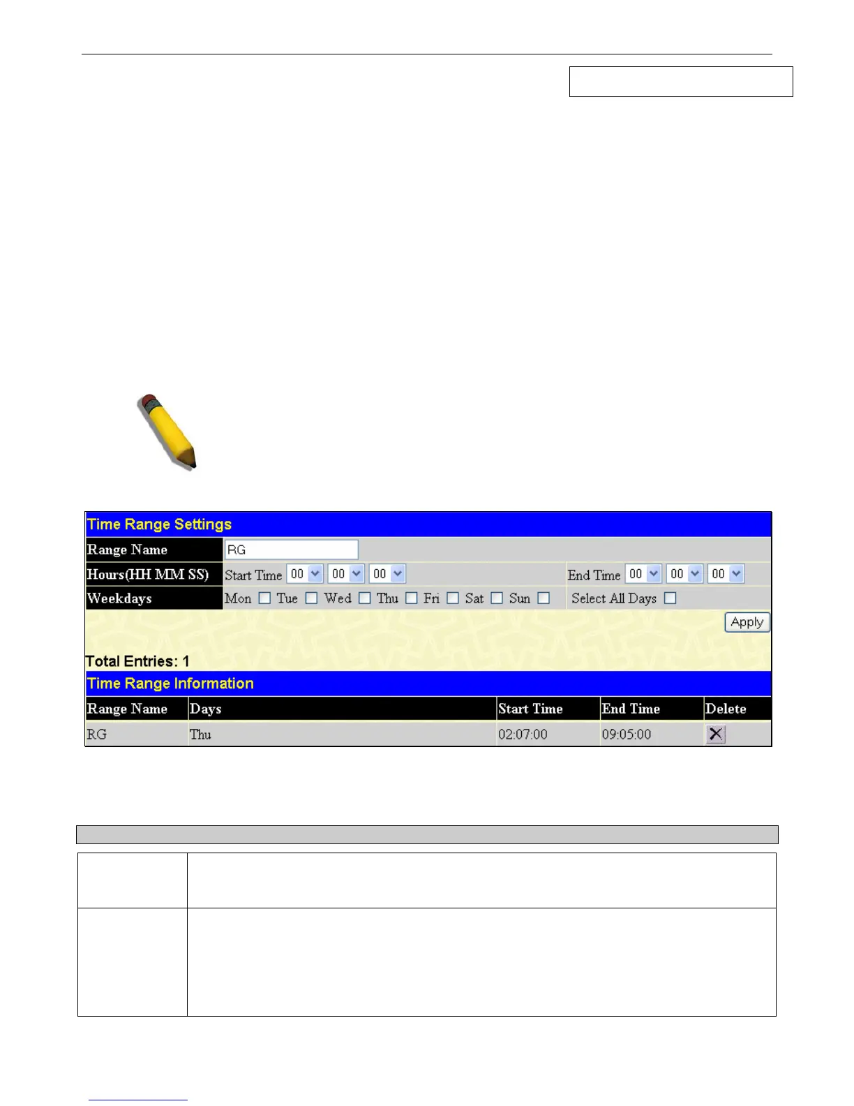NOTE: The Time Range commands are based on the time settings of the Switch.