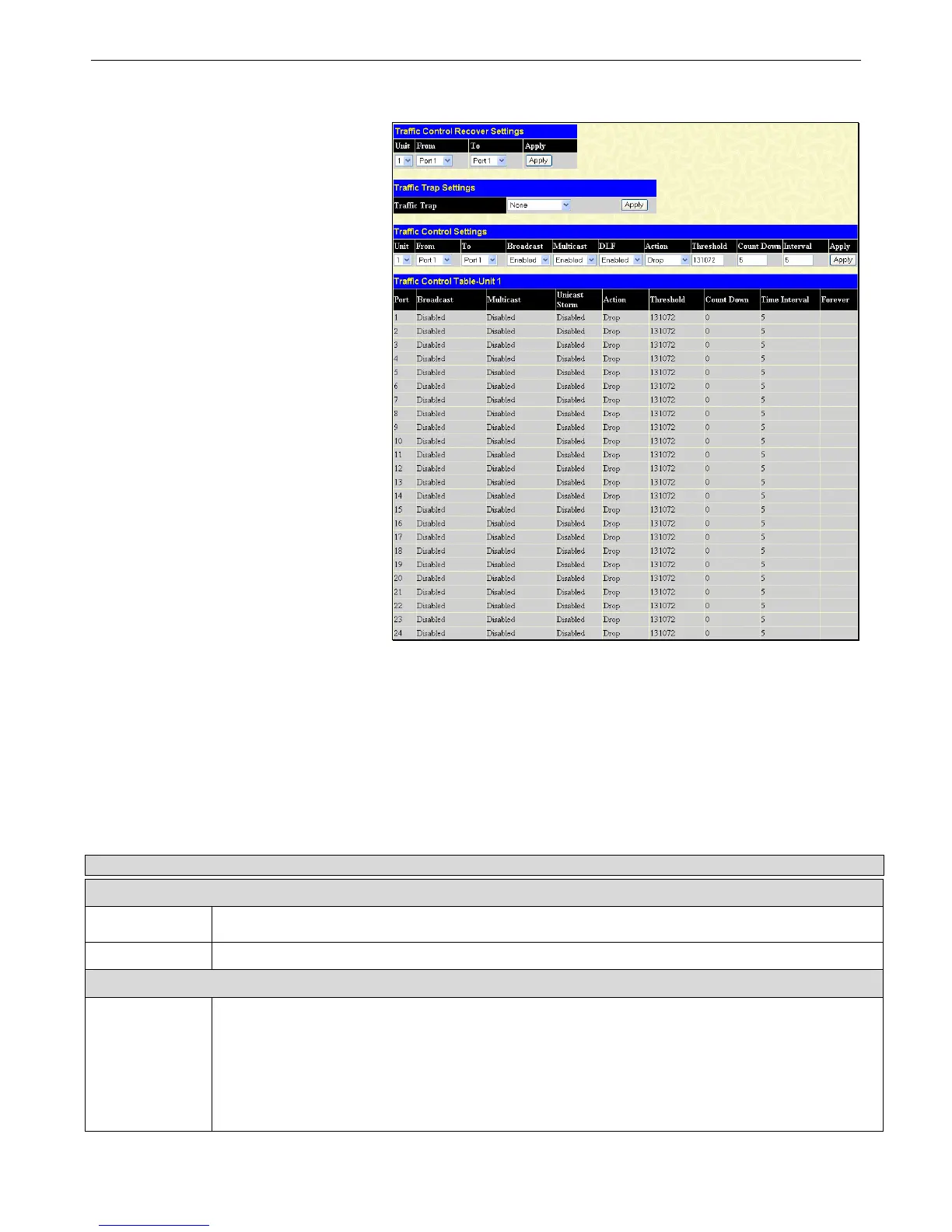 well as DLF (Destination Look Up Failure). To view the following window, click Security > Traffic Control: