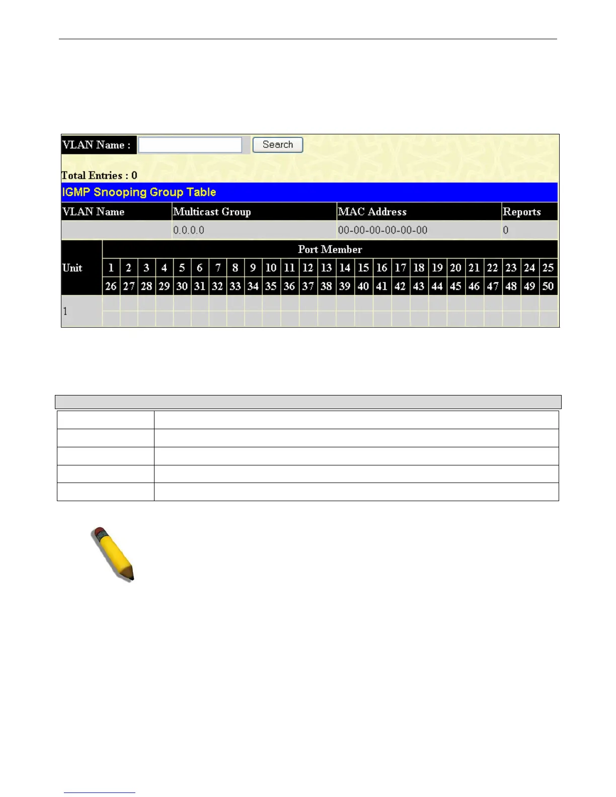 The user may search the IGMP Snooping Group Table by VLAN name by entering it in the top left hand corner and clicking