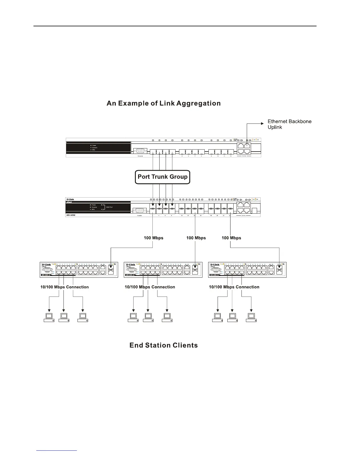 supports up to 32 port trunk groups with 2 to 8 ports in each group. A potential bit rate of 8000 Mbps can be achieved.