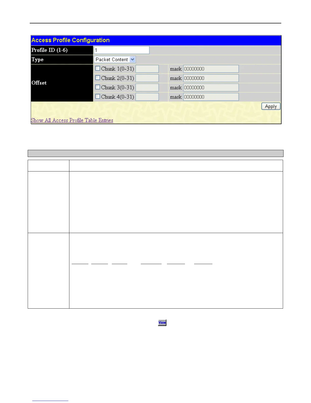 Figure 5 - 7 Access Profile Configuration window (Packet Content)