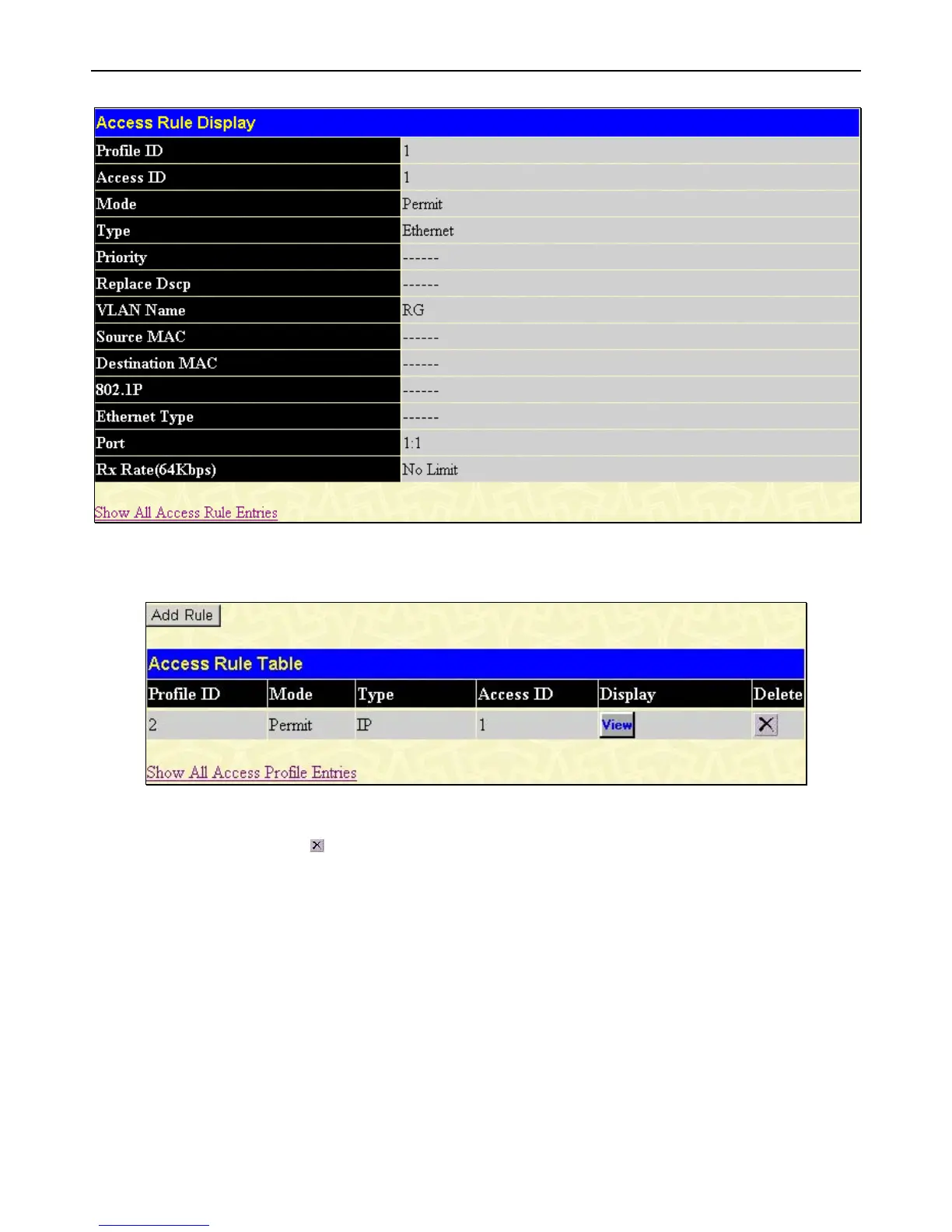 Figure 5 - 13 Access Rule Display window (Ethernet)