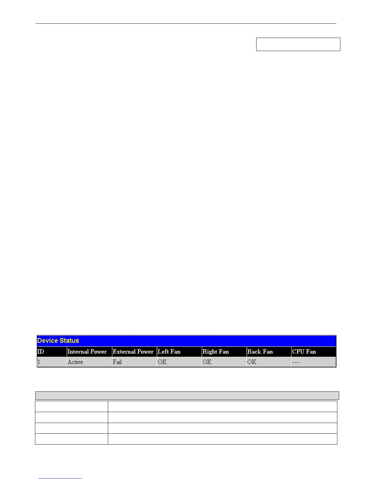 This window displays the status of the physical attributes of the Switch, including power sources and fans.