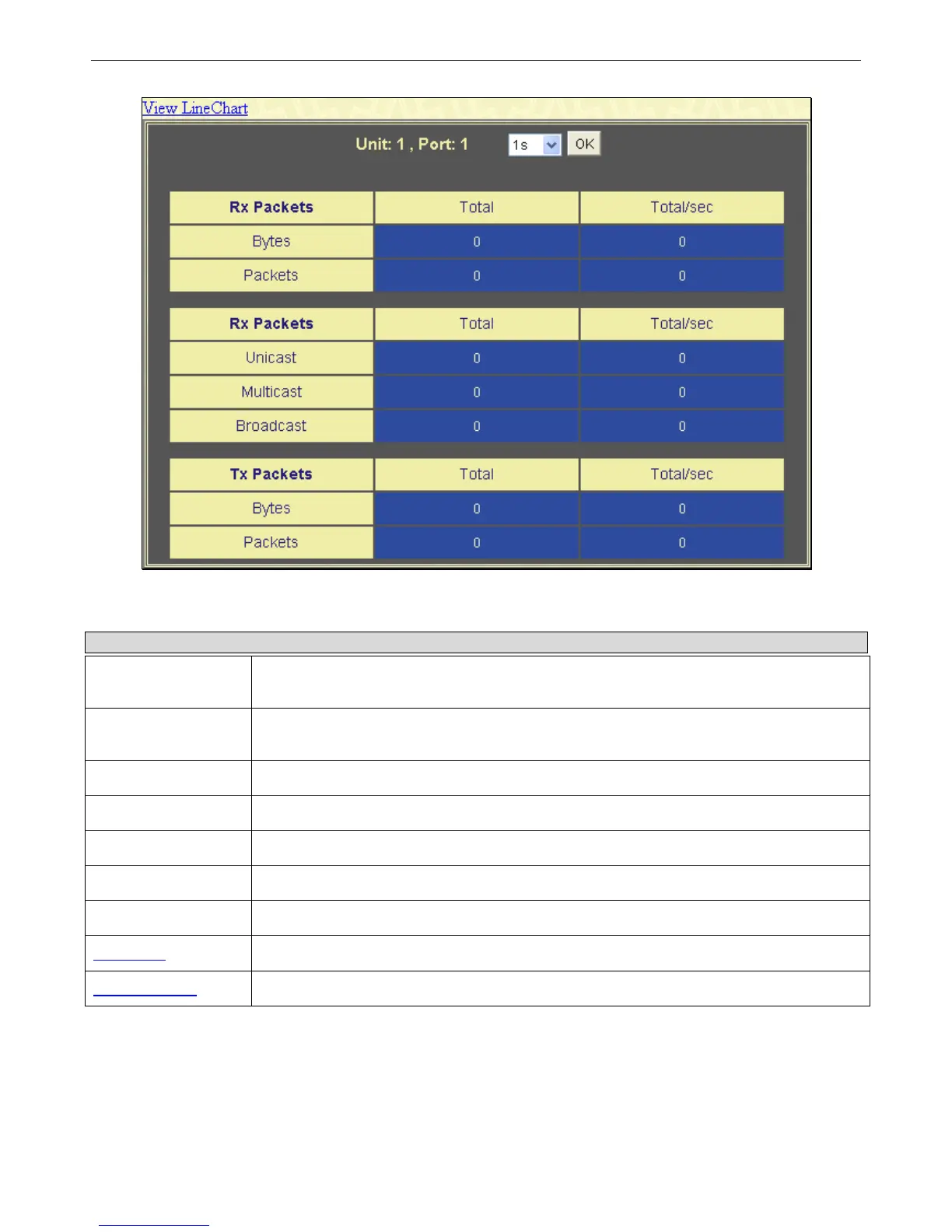 View Line Chart Clicking this button instructs the Switch to display a line graph rather than a table.