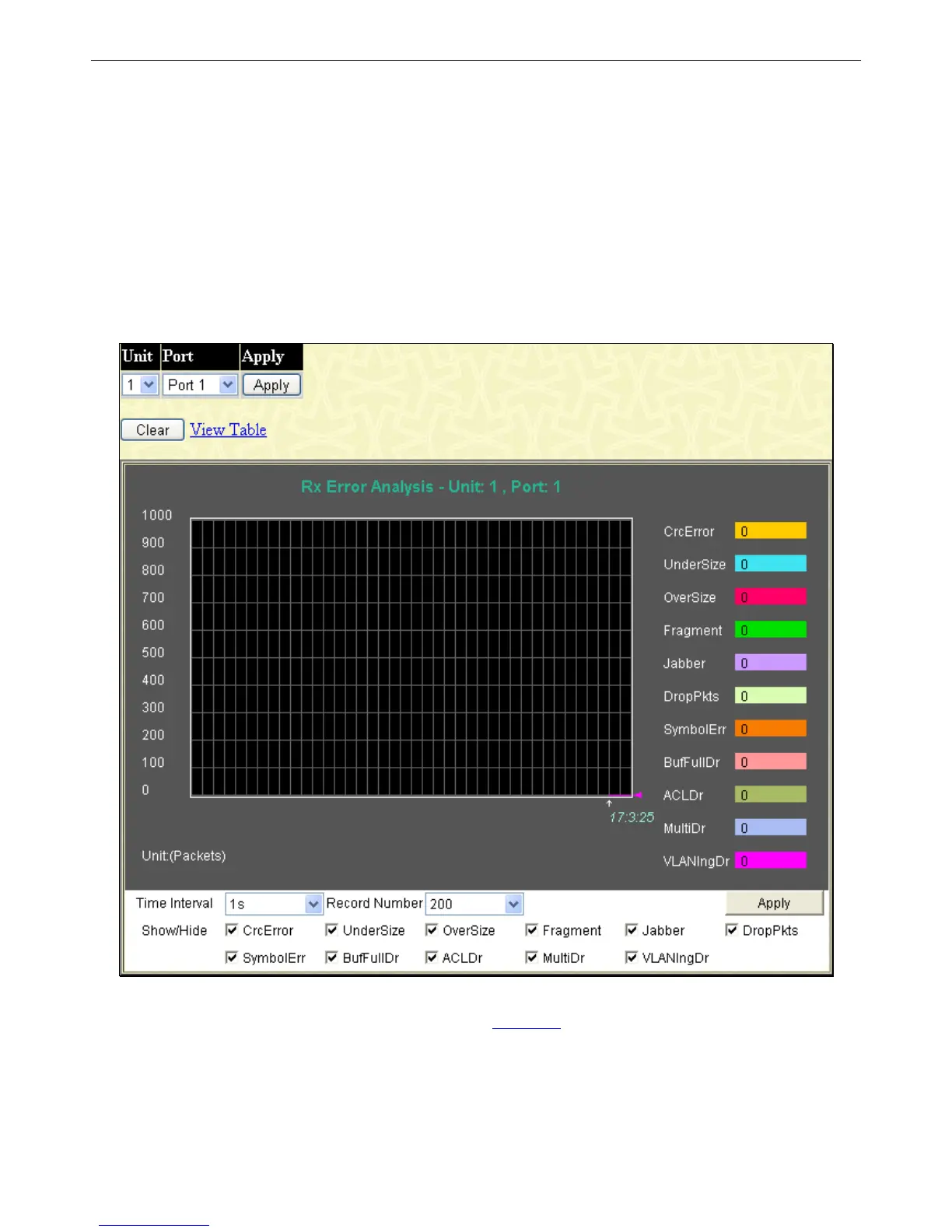 To view this window, click, Monitoring > Errors > Received (RX), as shown below: