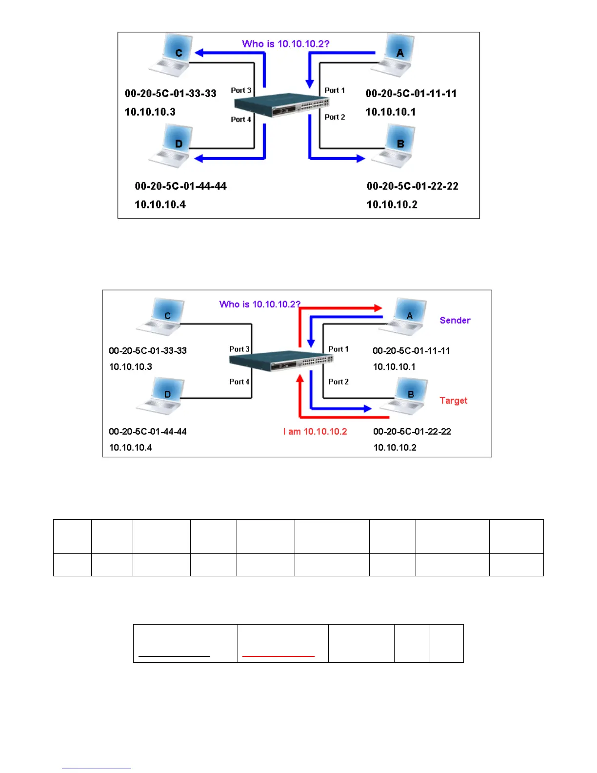 Table 3. The ARP reply will be then encapsulated into an Ethernet frame again and sent back to the sender. The ARP reply is in a