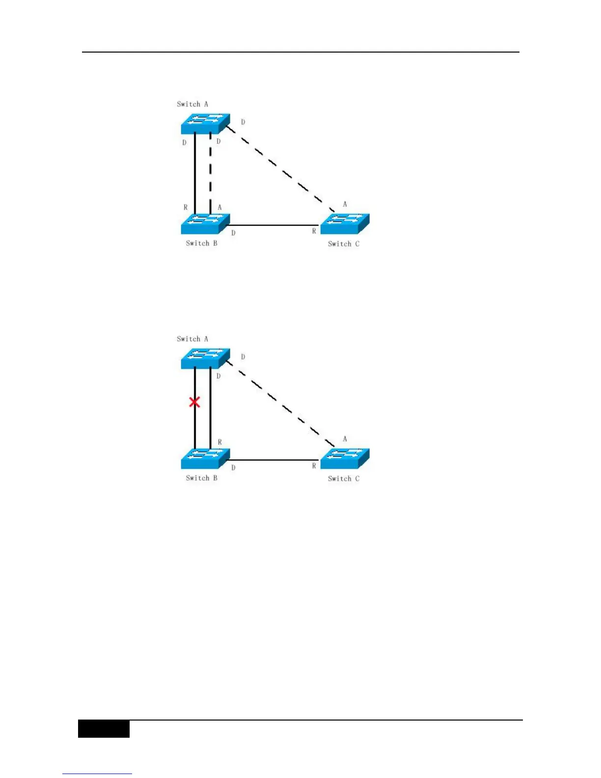 If the failure of the path between Switch B and Switch C occurs, the Switch C will switch the