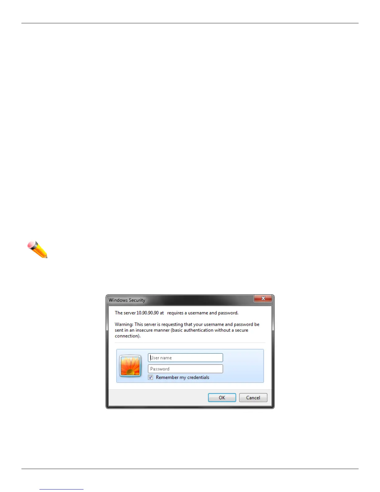 The Web User Interface’s authentication window can be accessed using the IP address of 10.90.90.90 (normal port), as