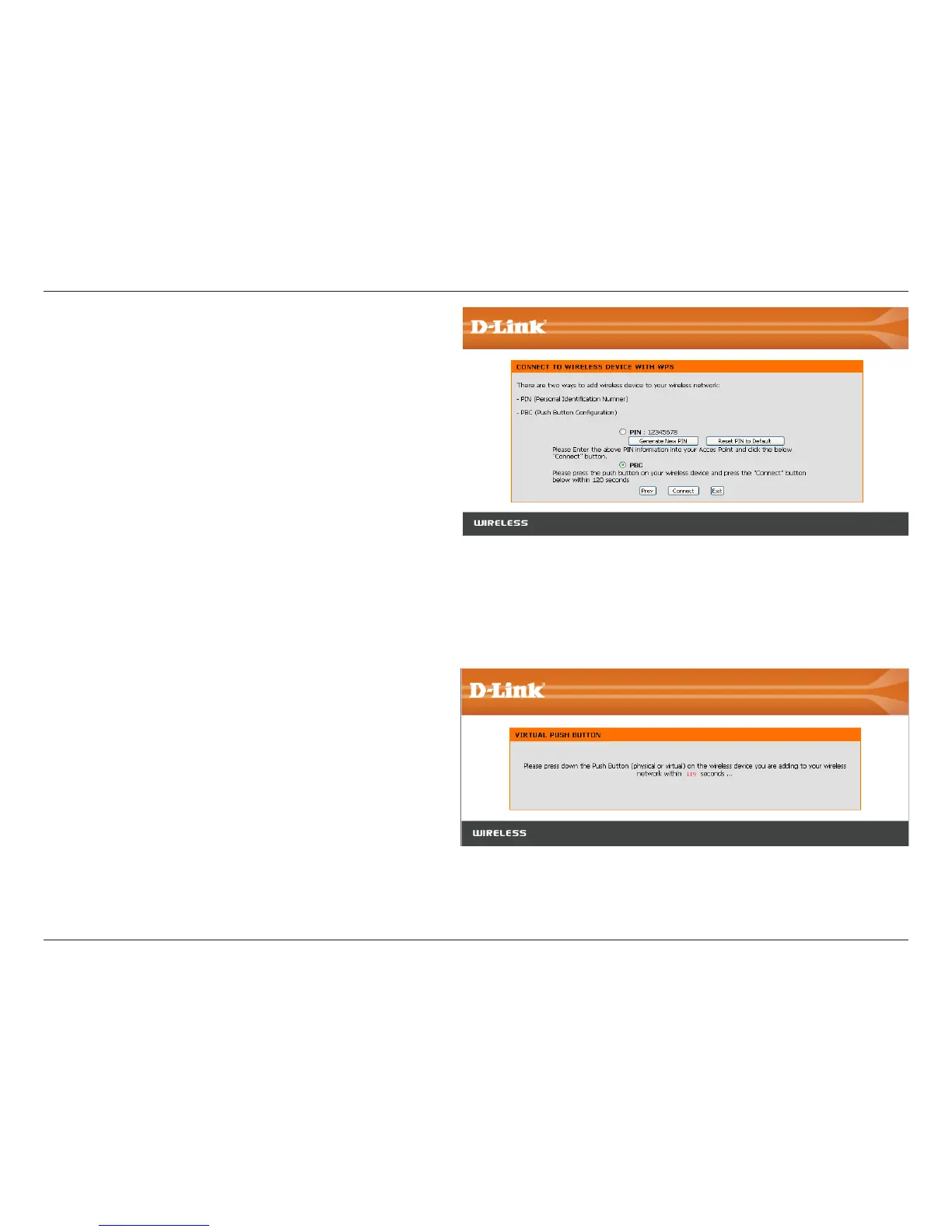 Select PBC to use the Push Button Configuration to