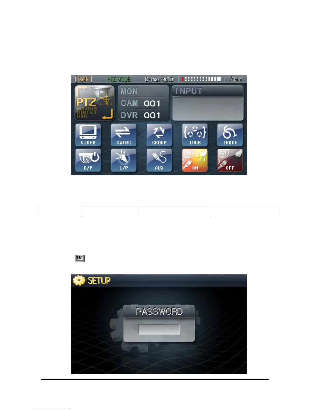 MAIN Keyboard PTZ Control mode Protocol : D-max 9600 CAM : 001 / DVR : 001
