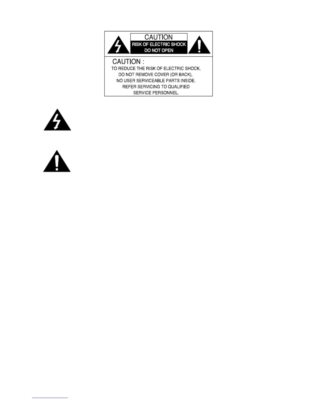 CAUTION : To prevent electric shock and risk of fire hazards: