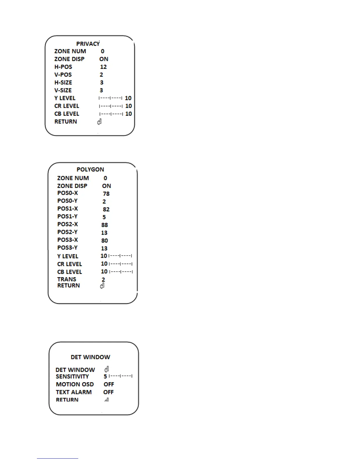 Y LEVEL(0~20): Adjust the Y LEVEL of the Privacy zone