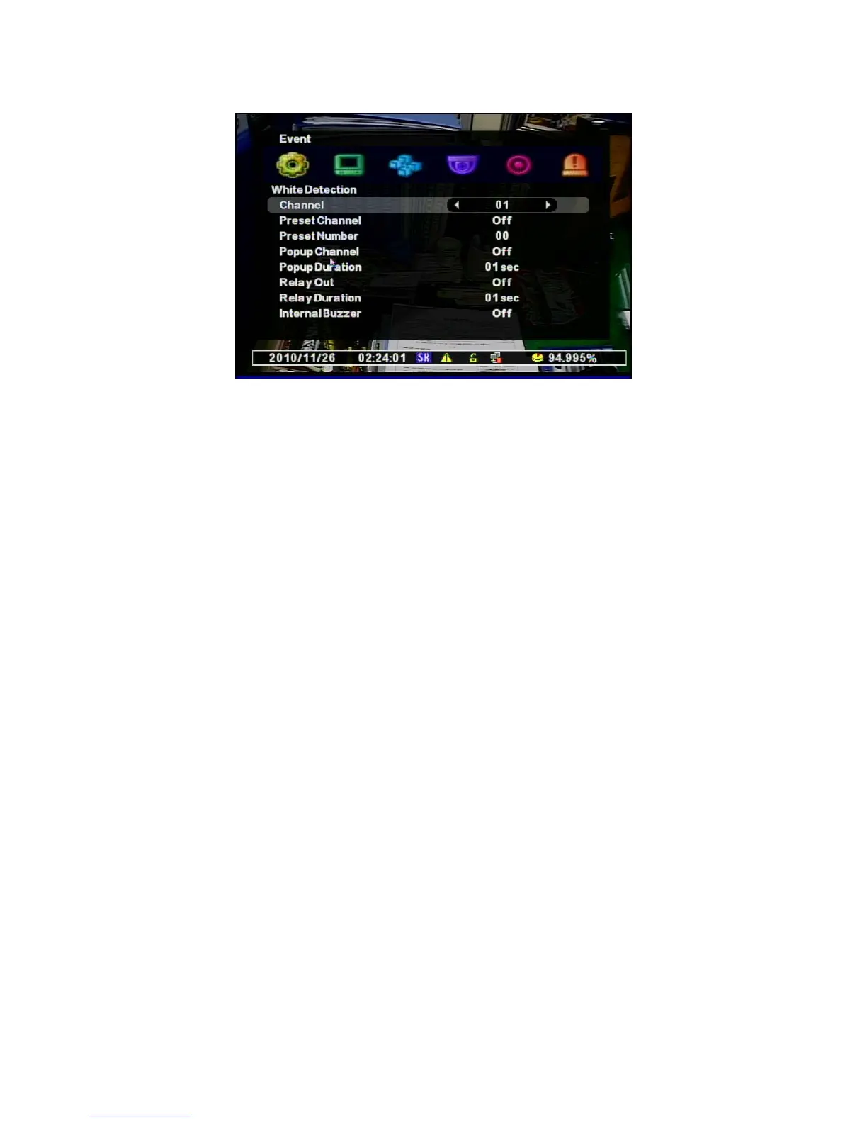 • Internal Buzzer: Selects the use of Internal Buzzer on the DVR