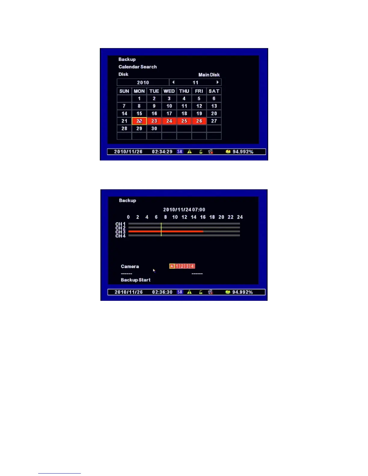 D-MAX STANDALONE H.264 - Backup Process Configuration; Time Selection for Backup; Camera Channel Selection for Backup